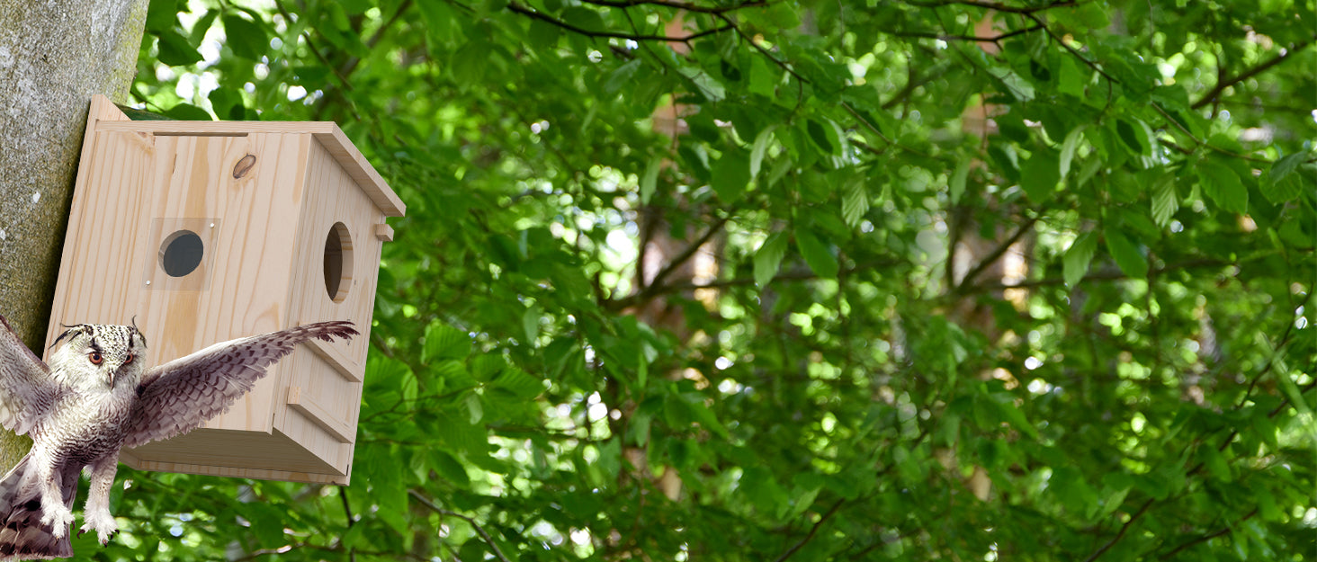 Smart Owl House With Camera, Outdoor Hanging Natural Wooden Owl Nesting Box, Solar Powered, Real-time Viewing And Motion Detection, Includes Mounting Screws, Easy To Assemble, Perfect Present For Owl Enthusiasts (brown, 10.8×12.2×16.8 Inch)