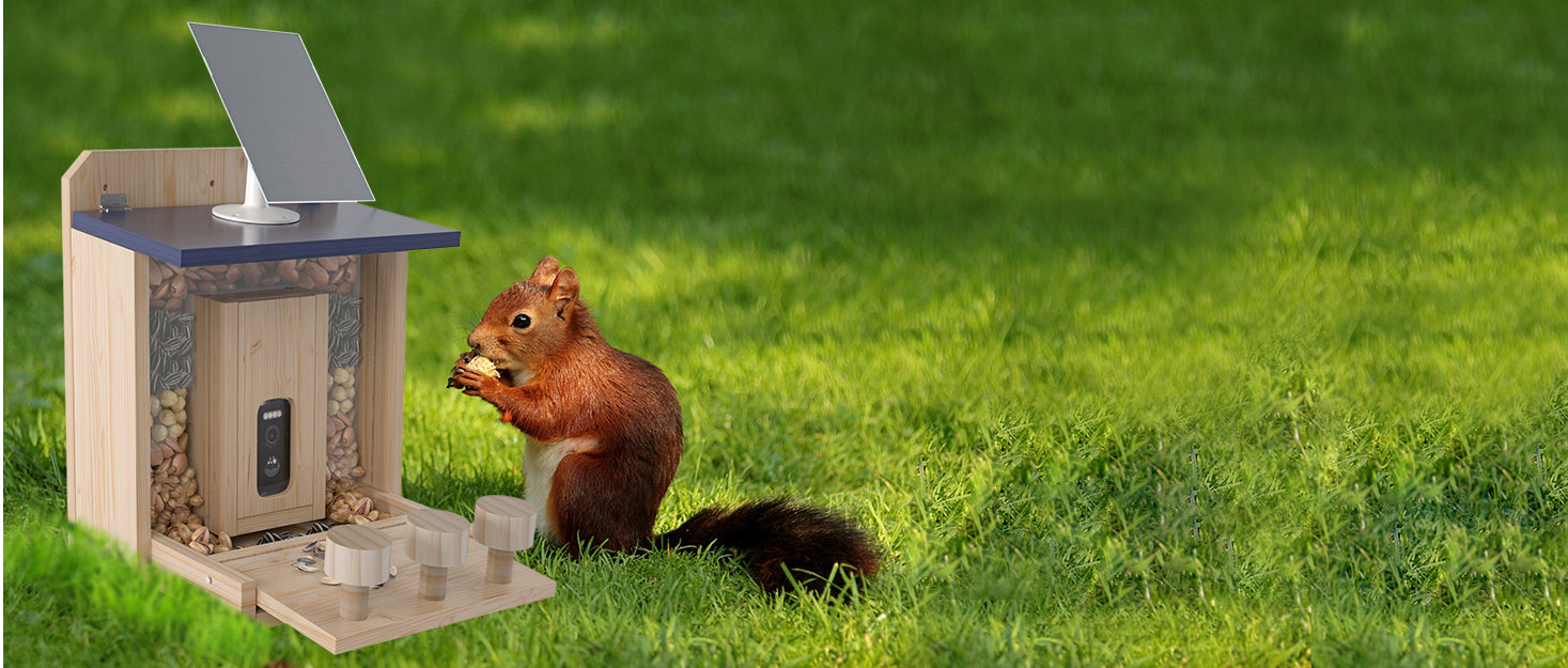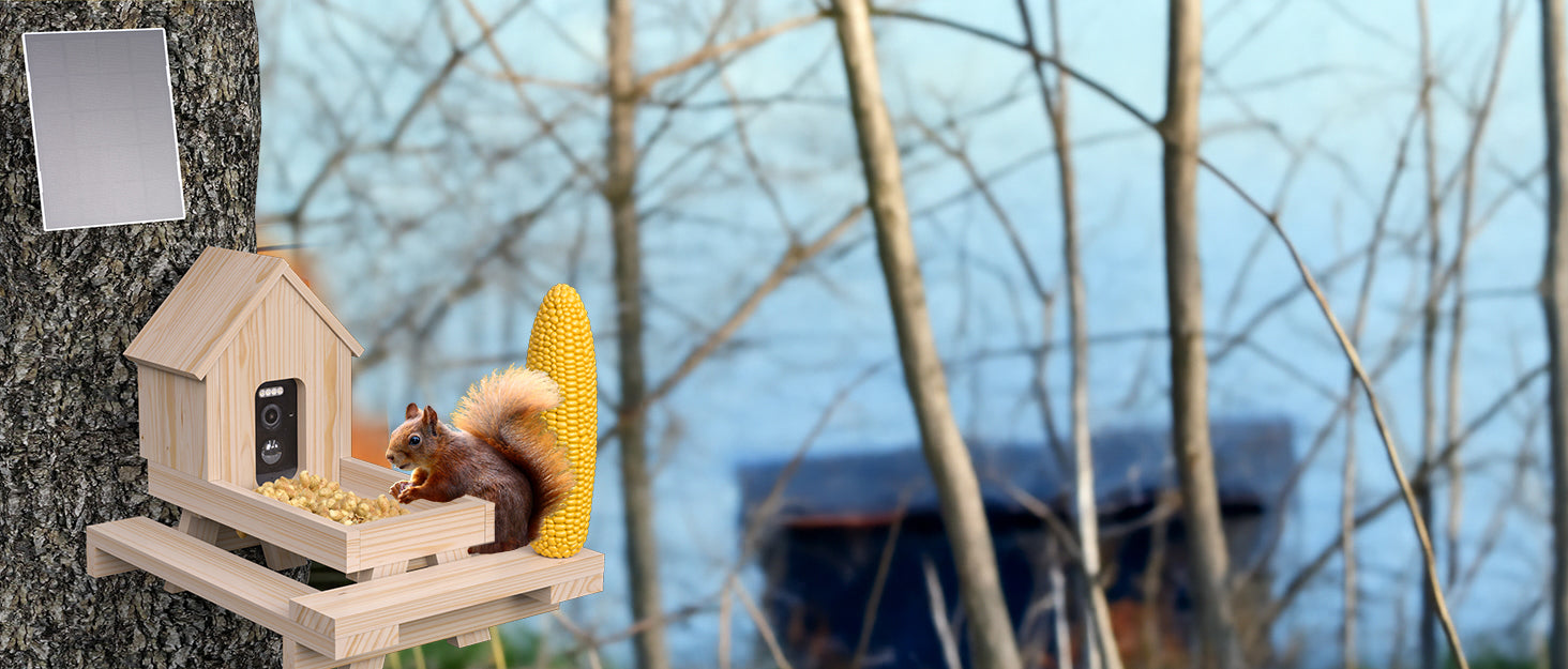 Smart Squirrel Feeder With Solar-powered Camera, 1.5l Wooden Nut Bar & Picnic Table, Hd Live View, App Control, 2.4g Wifi
